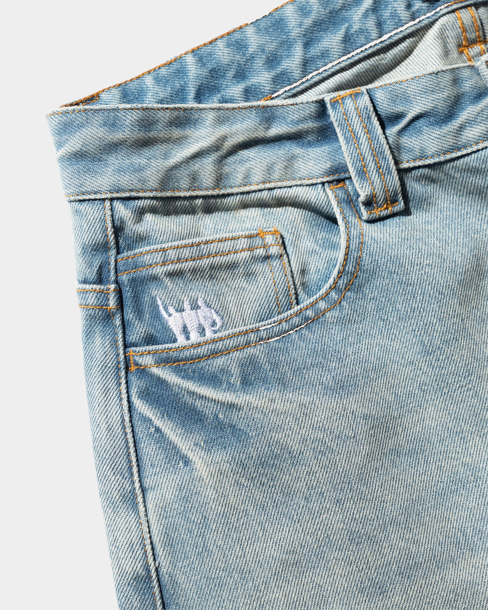 - LIGHT BLUE WASH, DUE TO THE WASHING METHOD EACH PAIR'S WASH IS UNIQUE